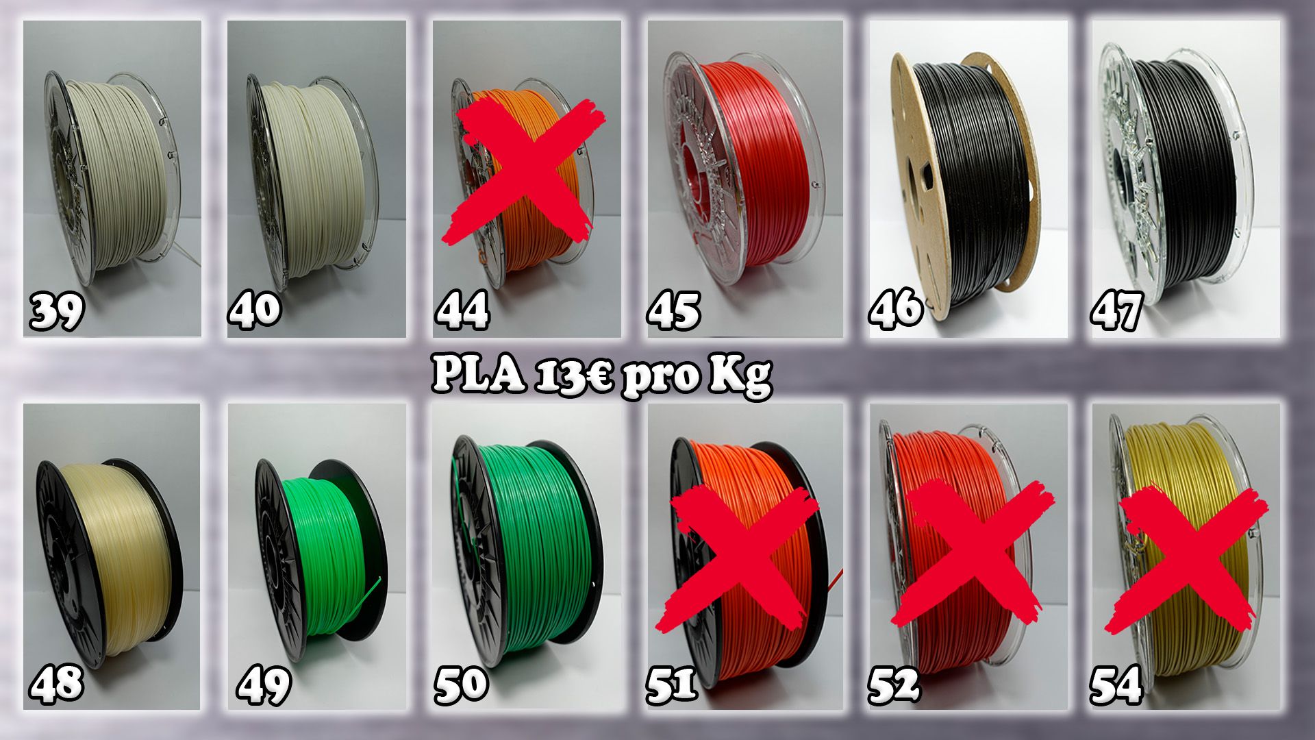 Du kannst bei mir PLA,PLA Carbon, PETG, PETG Carbon, TPU und ASA kaufen